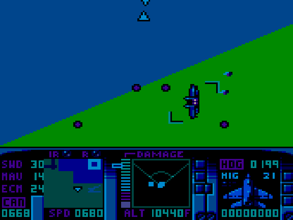 This is a very simplistic-seeming arcade flight game which initially impresses with colourful splash screens and impressive sampled speech, but it gives way to a rather stultifying game that's quite frankly boring, which as you're no doubt aware, is one of the least forgivable gaming sins. It looks unbelievably garish, with some astonishing choices of colour scheme, but I have to admit that the unbelievably bizarre look of the thing does at least present a scene so odd that it's almost compelling. It can be briefly enjoyable getting another fighter plane in your sights and shooting it down, but there's nothing to get your teeth into here - despite the interface and menus doing their level best to trick you into thinking otherwise. Interesting-ish, but no good at all. **